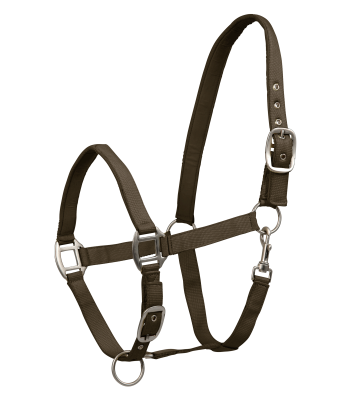 Licol doublé doux ajustable. Bouclerie mate robuste, nous recommandons les longes de licol assorties.